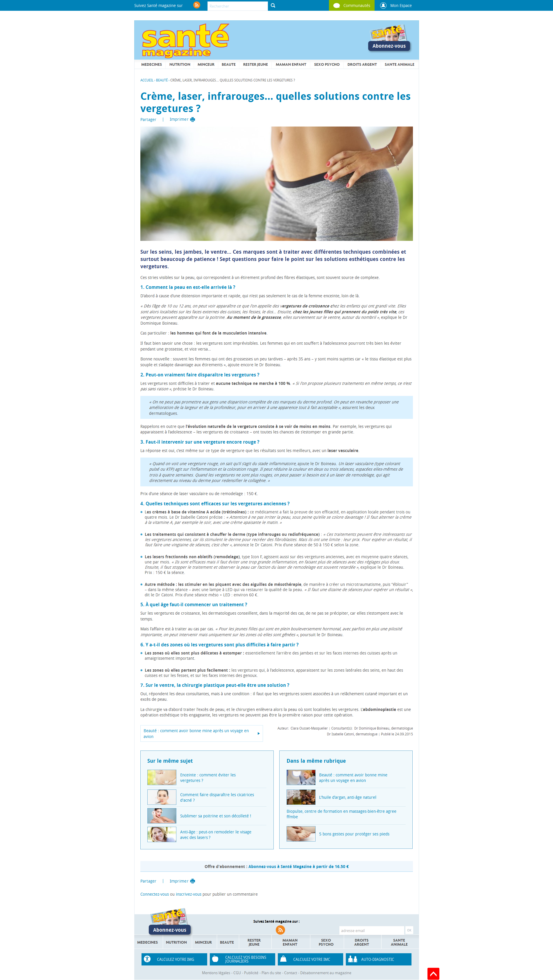 Crème, laser, infrarouges… quelles solutions contre les vergetures ?SANTÉ MAGAZINE Le 24 septembre 2015 >> Lisez l'article en ligne ou téléchargez-le : Cliquez pour telecharger le fichier Telechargement en cours