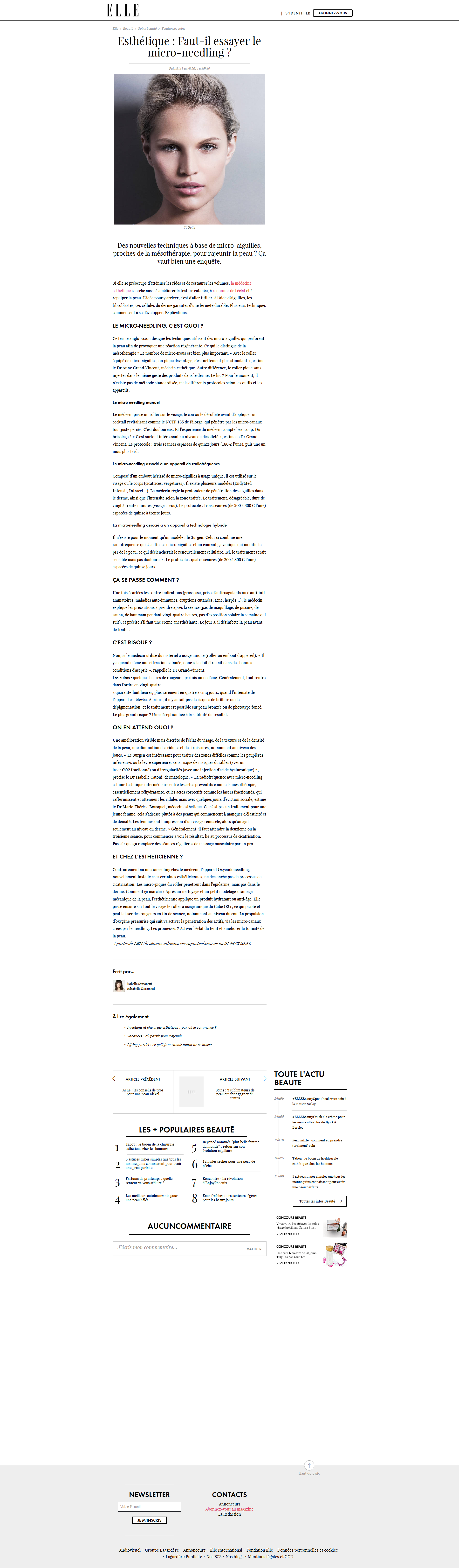 Esthétique : Faut-il essayer le micro-needling ?ELLE Le 09 avril 2014 >> Lisez l'article en ligne ou téléchargez-le : Cliquez pour telecharger le fichier Telechargement en cours