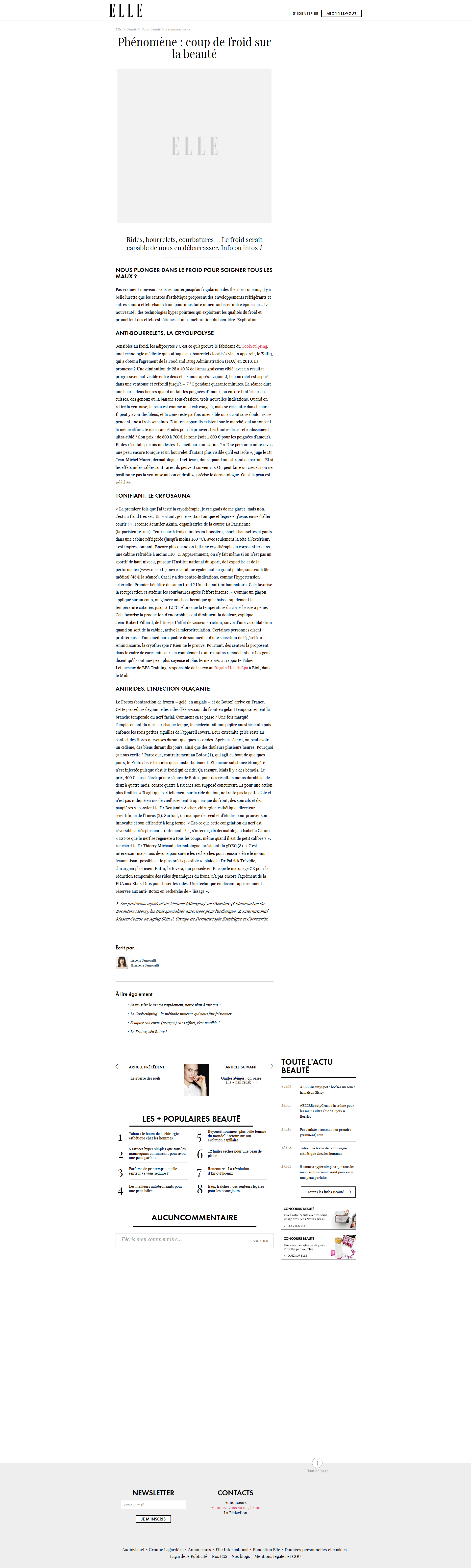 Phénomène : coup de froid sur la beautéELLE Le 17 mai 2013 >> Lisez l'article en ligne ou téléchargez-le : Cliquez pour telecharger le fichier Telechargement en cours