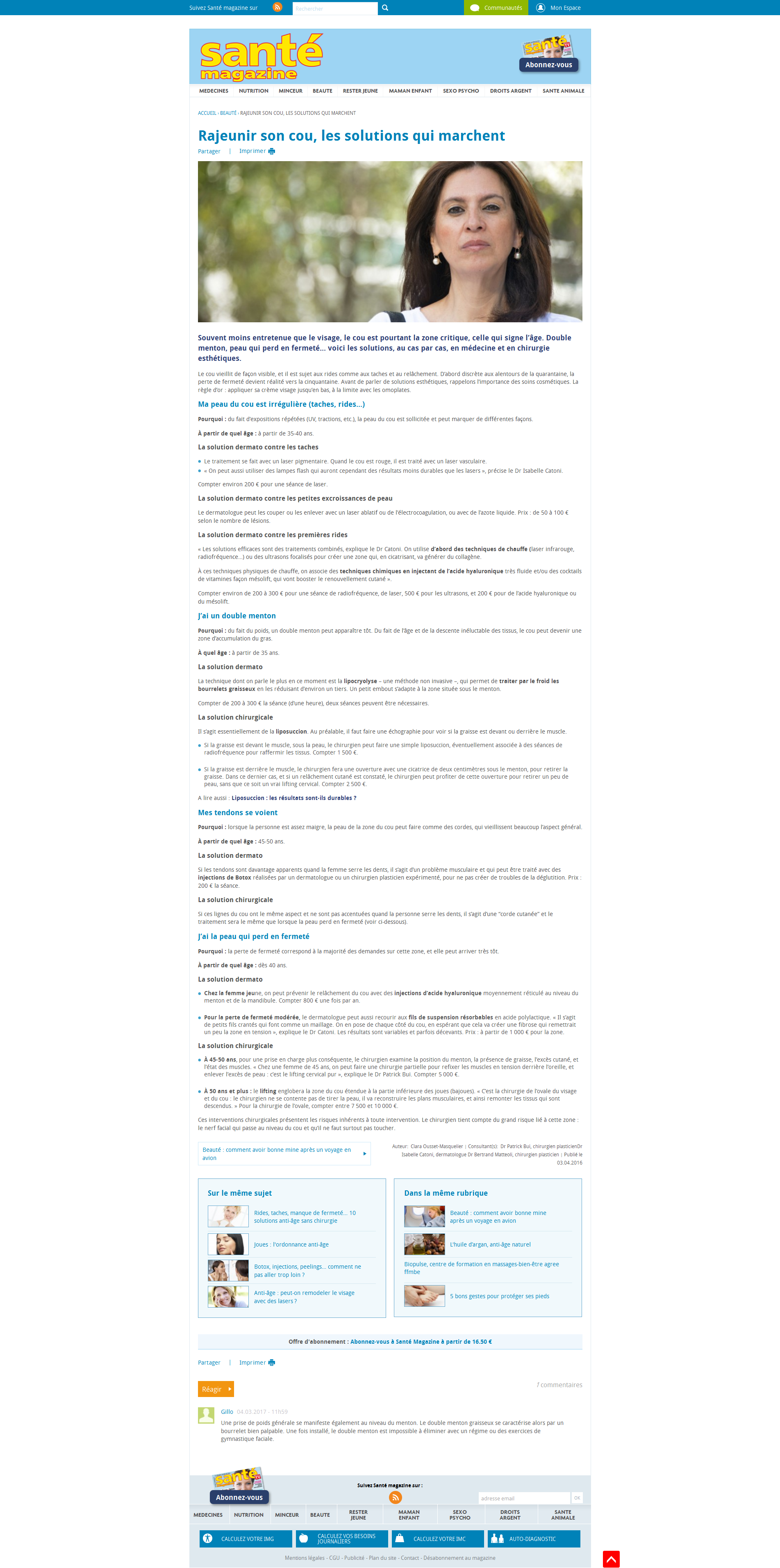 Rajeunir son cou, les solutions qui marchentSANTÉ MAGAZINE Le 03 avril 2016 >> Lisez l'article en ligne ou téléchargez-le : Cliquez pour telecharger le fichier Telechargement en cours