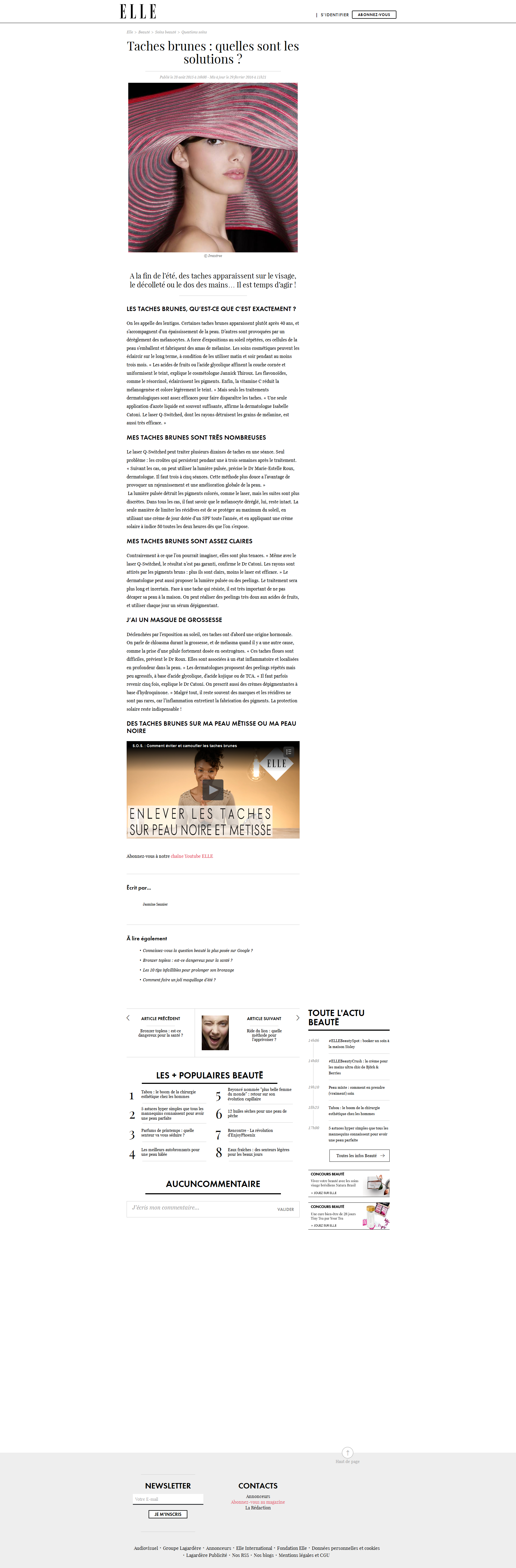 Taches brunes : quelles sont les solutions ?ELLE Le 28 août 2015 >> Lisez l'article en ligne ou téléchargez-le : Cliquez pour telecharger le fichier Telechargement en cours