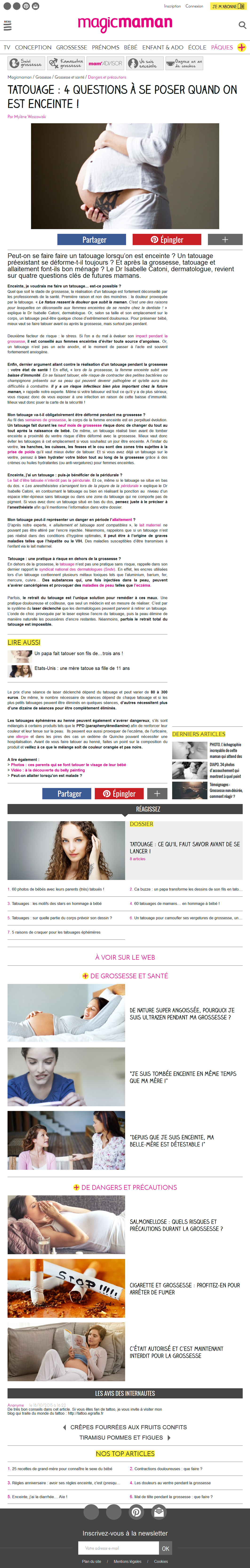 Tatouage : 4 questions à se poser quand on est enceinte !MagicmamanLe 01 août 2013 >> Lisez l'article en ligne ou téléchargez-le : Cliquez pour telecharger le fichier Telechargement en cours