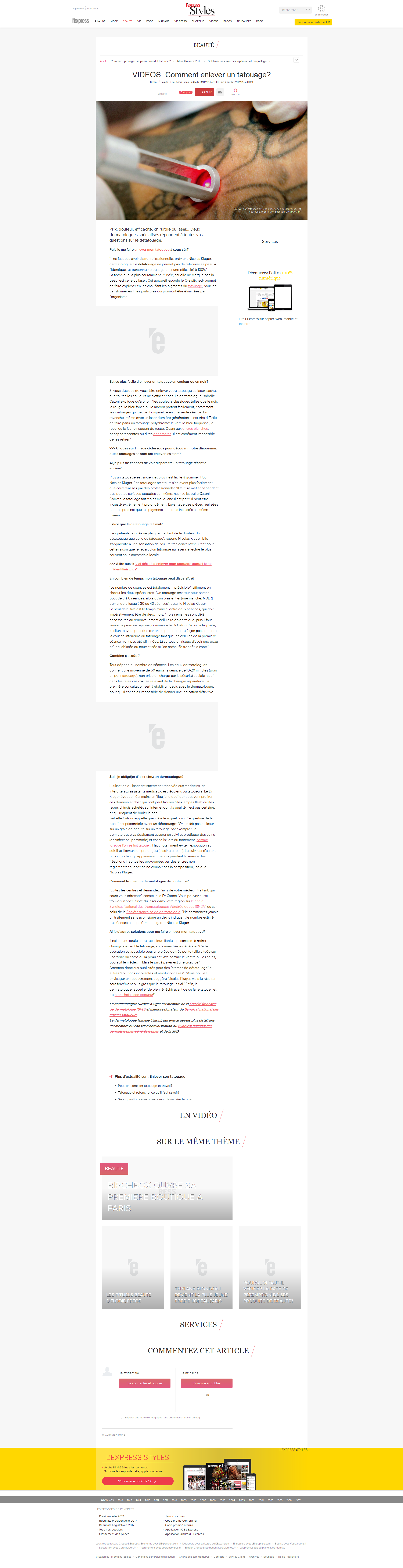 VIDEOS. Comment enlever un tatouage ?L'express Le 17/11/2014 >> Lisez l'article en ligne ou téléchargez-le : Cliquez pour telecharger le fichier Telechargement en cours